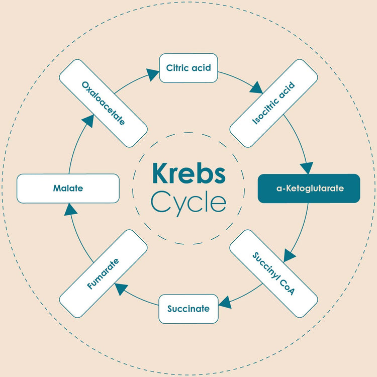 AKG is one of the main molecules that help our cells make energy. It works hard in this process called the Krebs cycle or citric acid cycle, which is a major marker of cellular energy production and metabolism.