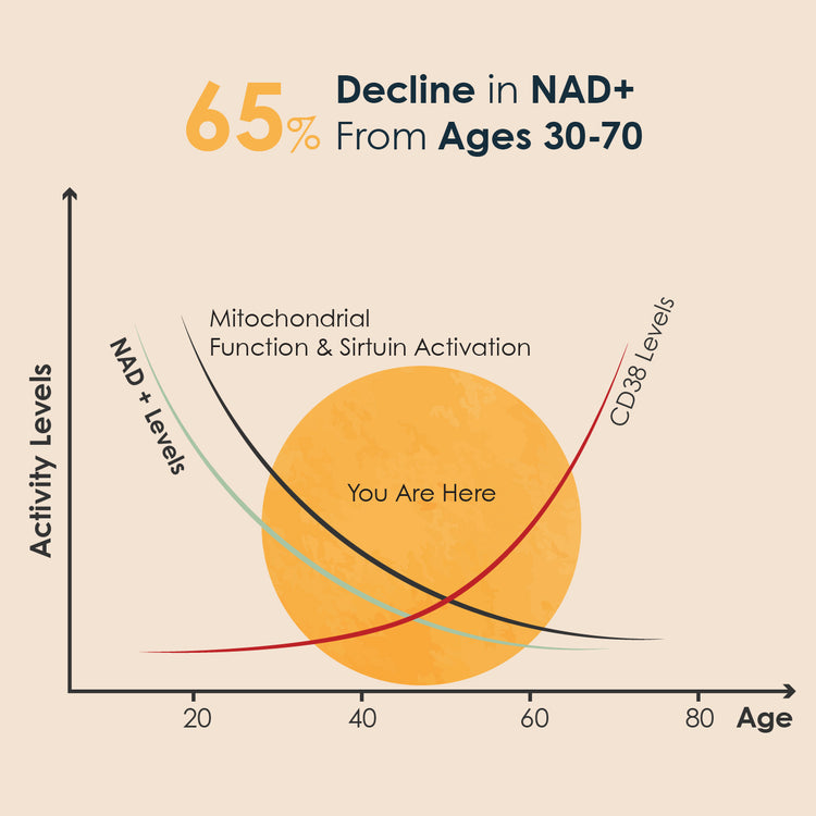 With a decrease in NAD+ your cellular machinery is not working at it's potential best. Cellular health diminishes and your health diminishes as a result.